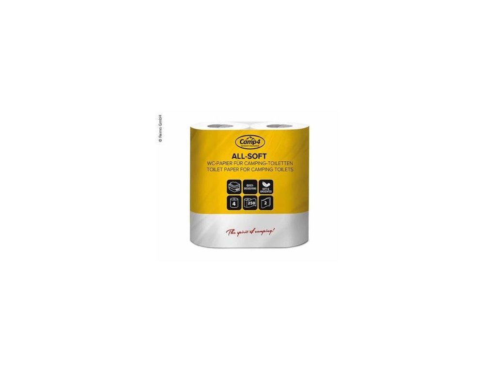 Špeciálny, rýchlo sa rozpúšťajúci toaletný papier. Nie je parfumovaný. Jedna rolká má 250 listov, 2-vrstvová. Obsah balenia: 4 rolky